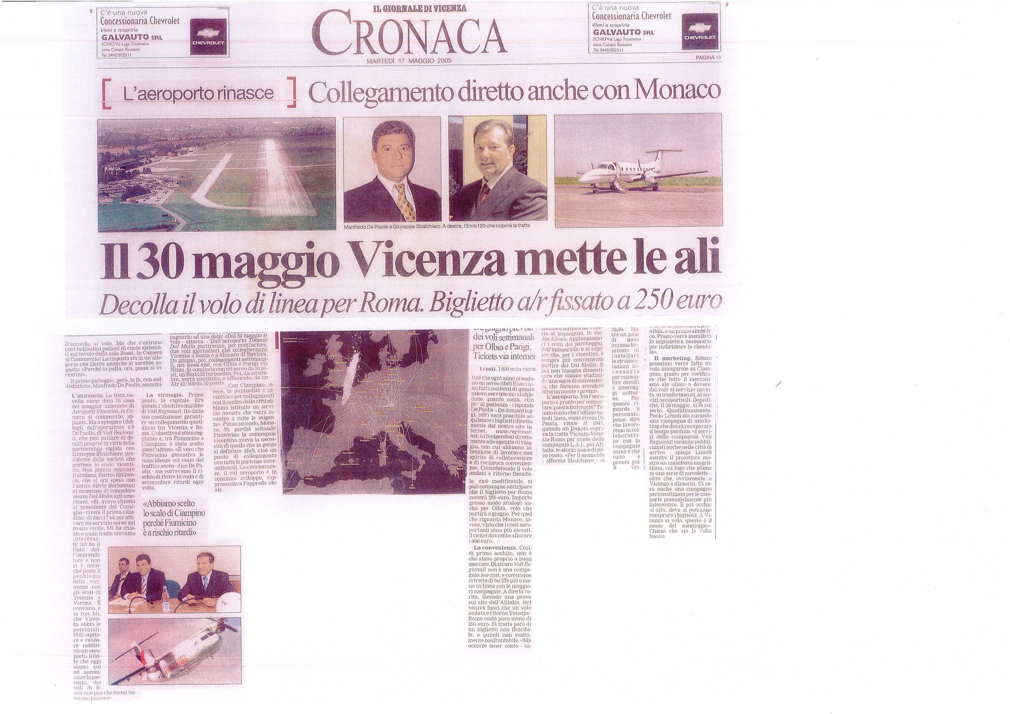 Partenza dei voli regolari da Vicenza